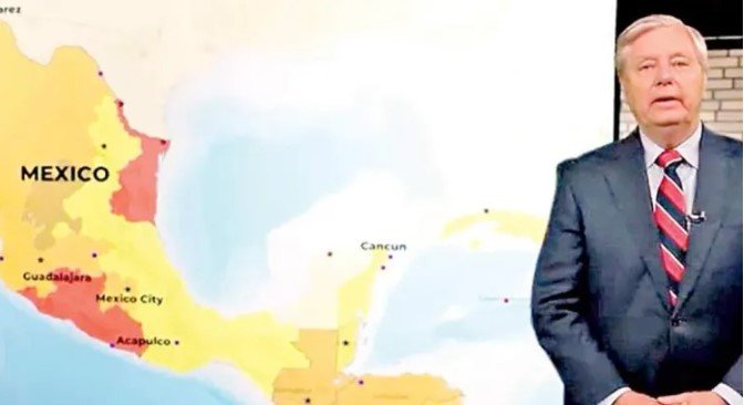 Mostró un mapa de la República Mexicana con estados en color rojo, a los que, dijo Graham, “el Departamento de Estado pide a los estadunidenses no ir porque es demasiado peligroso, ya que se encuentran bajo control de los carteles”.