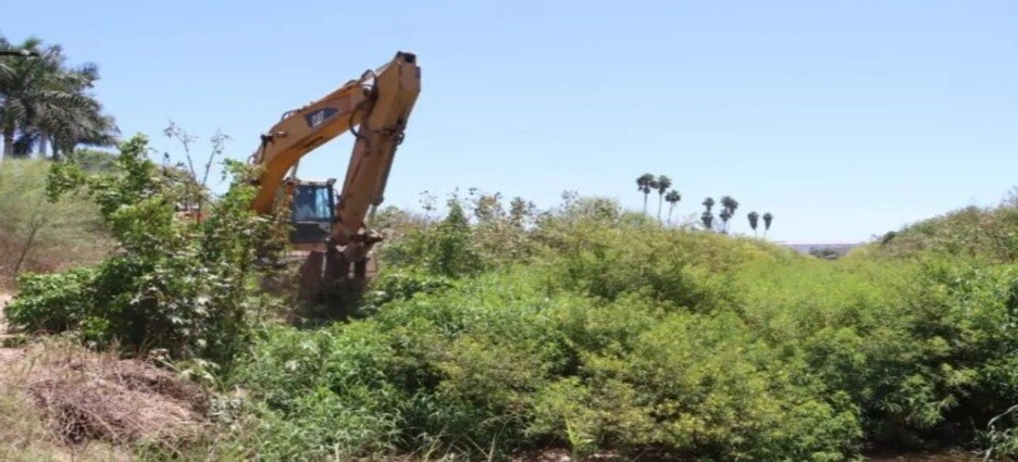 El municipio a través de la Secretaría de Obras Públicas de Ahome en coordinación con los módulos de riego, están desarrollando las acciones de limpieza de dichas obras hidráulicas.