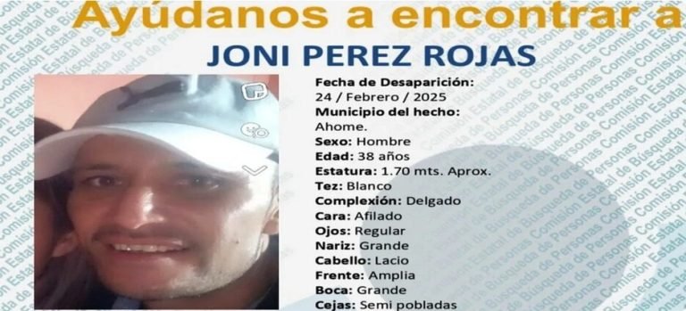 Joni Pérez Rojas, de 38 años de edad, desapareció el 24 de febrero de este año cuando pretendía dirigirse de Los Mochis, Ahome, al estado de Morelos. La última vez que sus familiares tuvieron contacto con el fue vía telefónica…