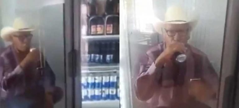 Cachan a hombre tomando cerveza dentro de un refrigerador.